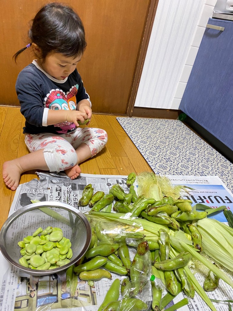 そんな中、先日娘とトウモロコシとソラ豆の皮むきをしました♪